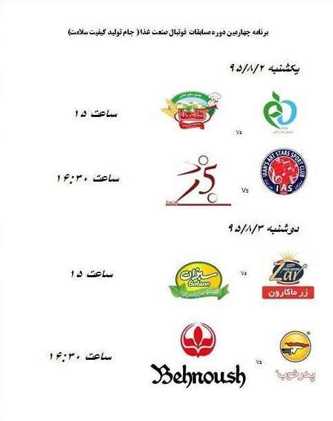 برنامه چهارمین دوره مسابقات فوتبال صنعت غذا ( جام تولید کیفیت سلامت)
