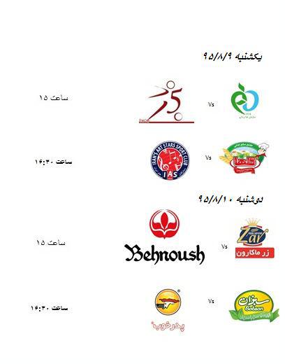 گروه B: پایگاه خبری فوتسال ، صنایع غذایی گلها ، ستارگان هنر ایران، سازمان غذا و دارو