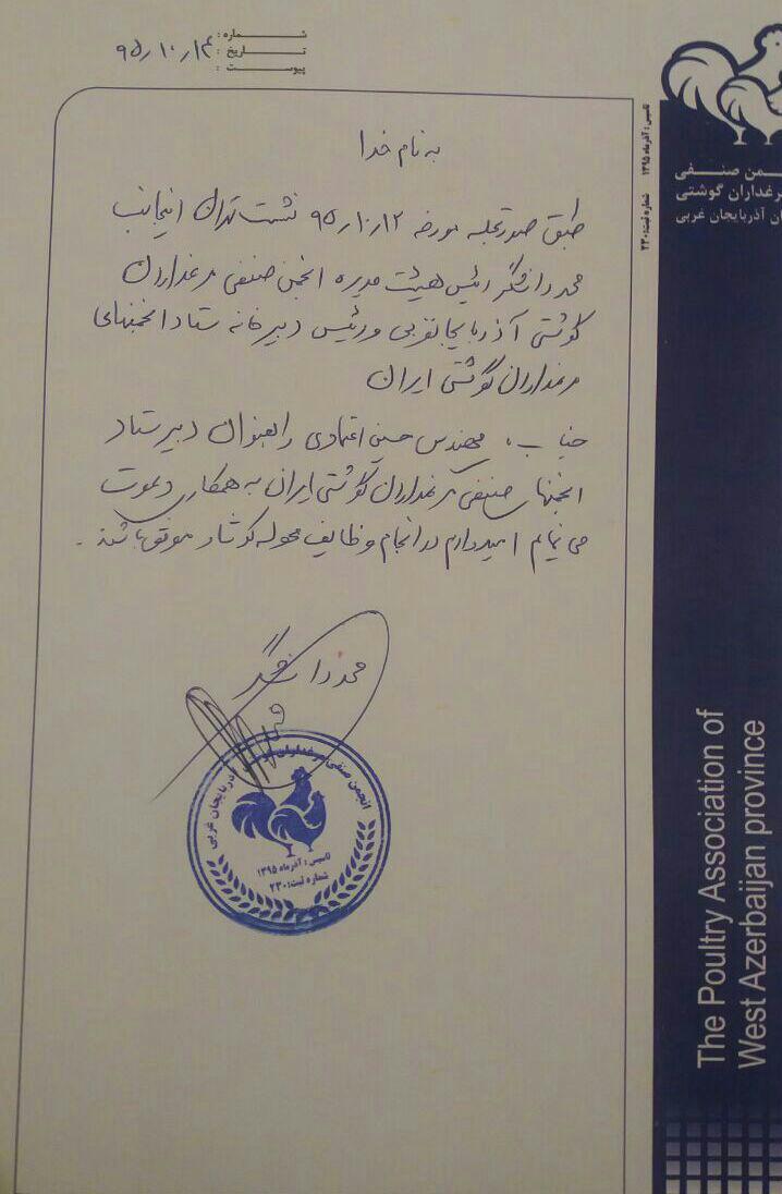 محمد دانشگر به عنوان رییس ستاد انجمنهای صنفی مرغداران گوشتی کشور منصوب شد