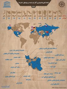 هر ساله آثاری از کشورهای مختلف، در میراث جهانی یونسکو ثبت میشوند. در بین کشورهای جهان، ایتالیا با ۵۴ اثر بالاترین جایگاه را از این نظر در یونسکو دارد و بعد از آن چین و اسپانیا با ۵۳ و ۴۷ اثر قرار دارند. ایران نیز با ۲۳ اثر ثبتشده در یونسکو در رتبه یازدهم این رتبهبندی قرار گرفته است. اطلاعات این اینفوگرافی از سایت یونسکو استخراج شده است.