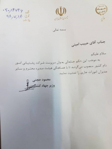 حبیب امینی سرپرست شرکت پشتیبانی امور دام کشور شد