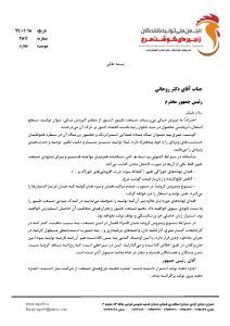 متن نامه ارسالی به شرح ذیل می باشد: