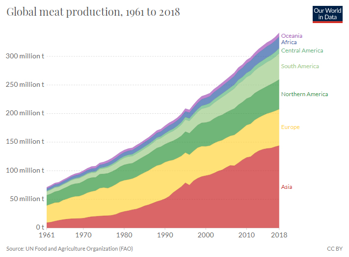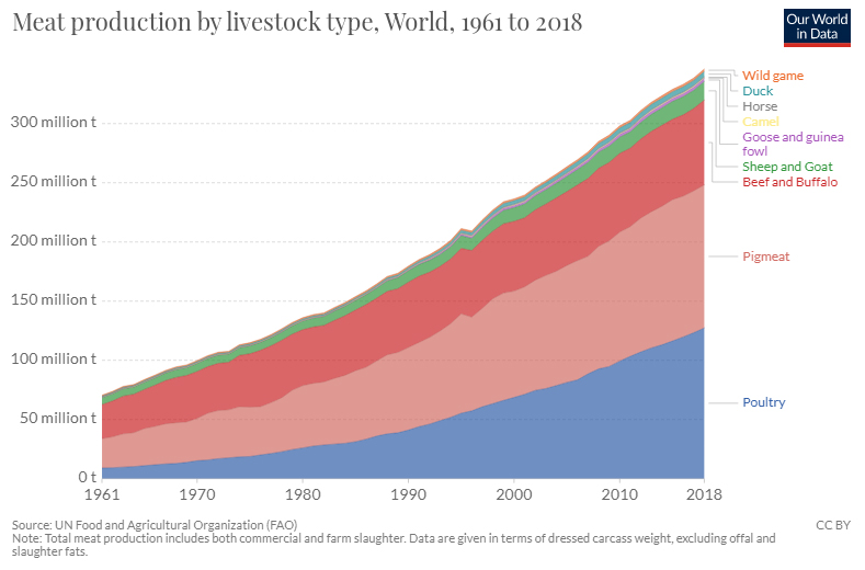 پیش بینی فائو از تولید کلی گوشت در جهان اعم از سفید و قرمز در سال ۲۰۲۰ به میزان ۳۳۳ میلیون تن می باشد که این میزان در سال گذشته ۳۳۸٫۹ میلیون تن تخمین زده می شد که برنامه ی تولید سال جاری میلادی دچار ۱٫۷% انحراف می باشد.
