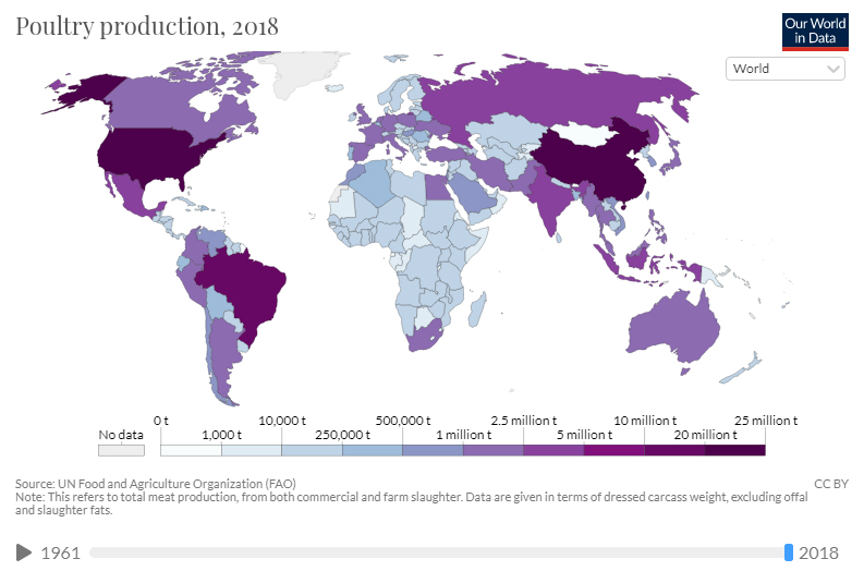 با توجه به میانگین رشد جهانی، طبیعتا انتظار داریم تا نرخ رشد متنوعی را از کشورها شاهد باشیم. در حالی که پیش بینی ها از افزایش تولید گوشت مرغ در چین، اتحادیه اروپا، برزیل و مکزیک خبر می دهد، FAO پیش بینی می کند در کشورهایی نظیر هند، تایلند، ترکیه و ایالات متحده شاهد کاهش تولید باشیم. اثرات مستقیم و غیرمستقیم بیماری ویروس کرونا (COVID-19) و همچنین رفتار مختلف و سیاست های کشورها در قبال این موضوع دلیلی بر این اختلاف می باشد.