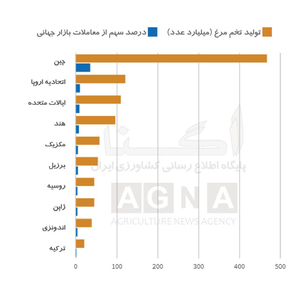 به گزارش بخش بین المللی پایگاه اطلاع رسانی کشاورزی ایران(اگنا)؛ چین برای ۳۰ سال گذشته بزرگترین تولید کننده تخم مرغ در جهان بوده است و مطالعه ای که توسط مجله world poultry در سپتامبر ۲۰۱۸ منتشر شد نشان داد که عواملی نظیر رشد سریع اقتصادی، بهبود زنجیره های توزیع و قیمت مناسب دلایل اصلی رشد هستند.