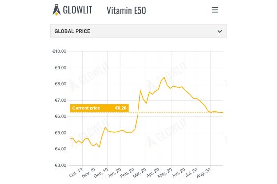 قیمت جهانی این محصول در حال حاضر حدود کیلویی ۷٫۴۵ دلار آمریکا است. خریداران در اسپانیا ویتامین E50 را کیلویی حدود ۷٫۷۵ دلار آمریکا خریداری می کنند.