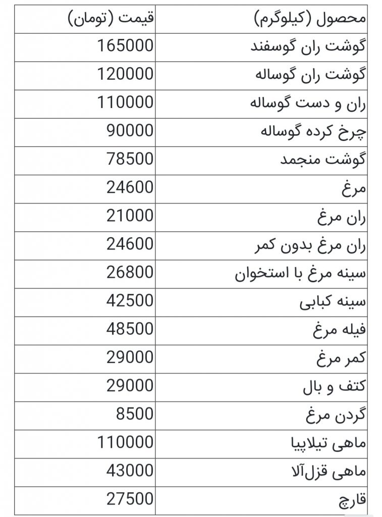 به گزارش پایگاه اطلاع رسانی کشاورزی ایران (اگنا):به نقل از فارس، حاکی است قیمت گوشت و انواع محصولات پروتئینی در بازار به شدت گران شده است، به طوری که قیمت هر کیلوگرم ران گوسفند در منطقه ۱۹ تهران ۱۶۵ هزار تومان به فروش میرود. این قیمتها در هفته گذشته به یکباره رشد کرده است.