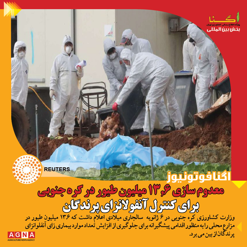 وزارت کشاورزی کره جنوبی در ۶ ژانویه سالجاری میلادی اعلام داشت که ۱۳.۶ میلیون طیور در مزارع محلی را به منظور اقدامی پیشگیرانه برای جلوگیری از افزایش تعداد موارد بیماری زای آنفلوانزای پرندگان از بین می برد. به گزارش بخش بین المللی پایگاه اطلاع رسانی کشاورزیو صنایع غذایی ایران به نقل از هرالد کره؛ کره […]