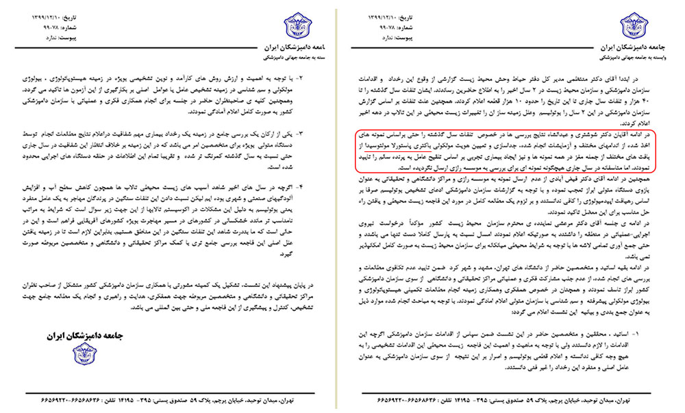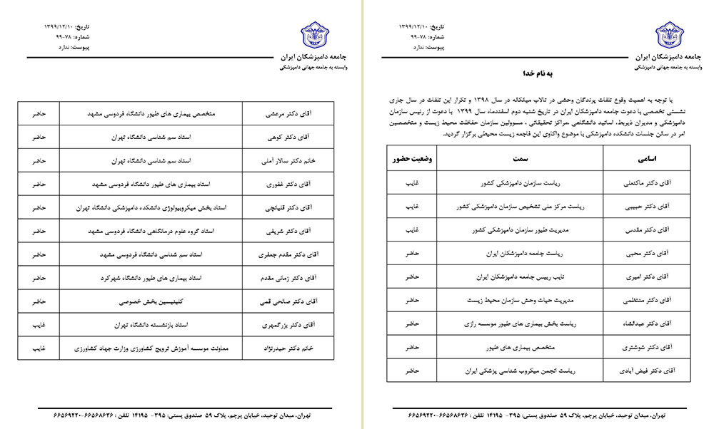 اخیرا “جامعه دامپزشکان ایران” به منظور بررسی عوامل مرگ و میر گسترده پرندگان مهاجر در تالاب میانکاله با دعوت از مسئولان سازمان دامپزشکی کشور، مسئولان سازمان حفاظت محیط زیست، مسئولان موسسه حقیقات واکسن و سرمسازی رازی و اعضای هیئت علمی دانشگاههای تهران و فردوسی مشهد نشستی برگزار کرد که صورتجلسه آن، عملکرد سازمان دامپزشکی کشور در مواجهه با این فاجعه محیط زیستی را به چالش میکشد.