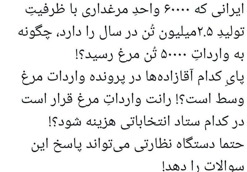 یک نمونه از طوفان توئیتری فوقآمده. جالب است بدانید تعداد کل مرغداریهای کشور حدود ۲۰هزار باب است که البته حدود ۲۰درصد آنها غیرفعال هستند!