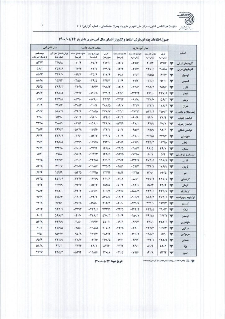 گزارش سازمان هواشناسی کشور