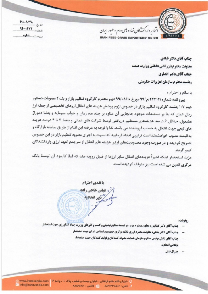 در نامه واردکنندگان به رییس اتاق بازرگانی تهران عنوان شد: