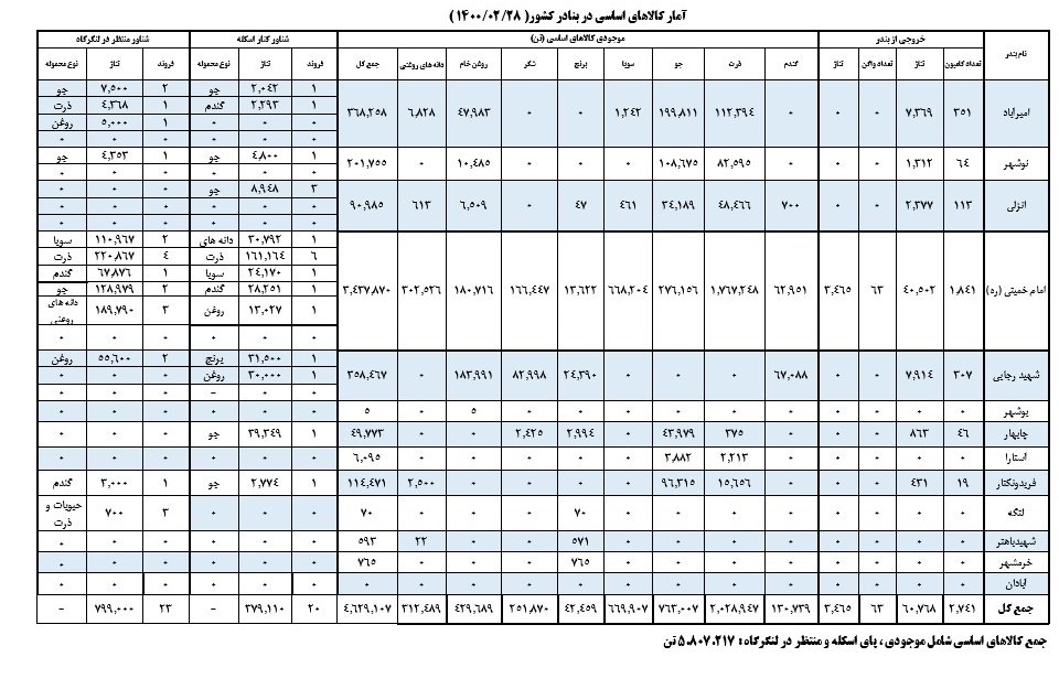 در همین راستا آمارهای دقیق تر کالای موجود در بنادر کشور نیز قابل مشاهده میباشد.
