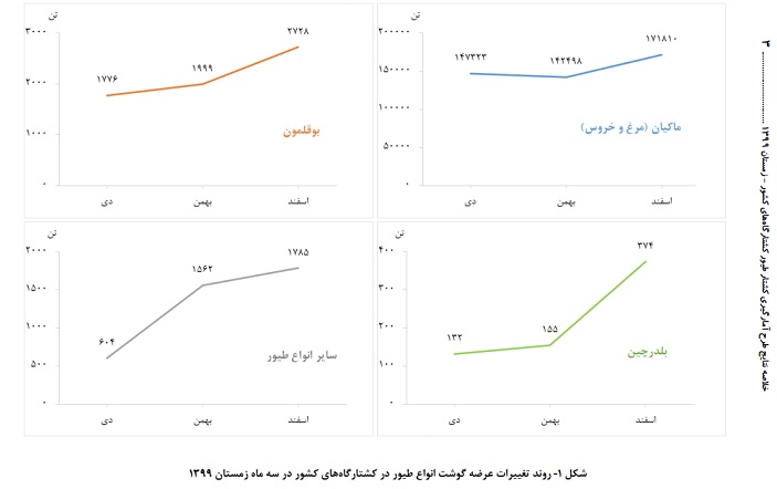 خلاصه نتایج طرح آمارگیری کشتار طیور کشتارگاههای کشورزمستان ۱۳۹۹
