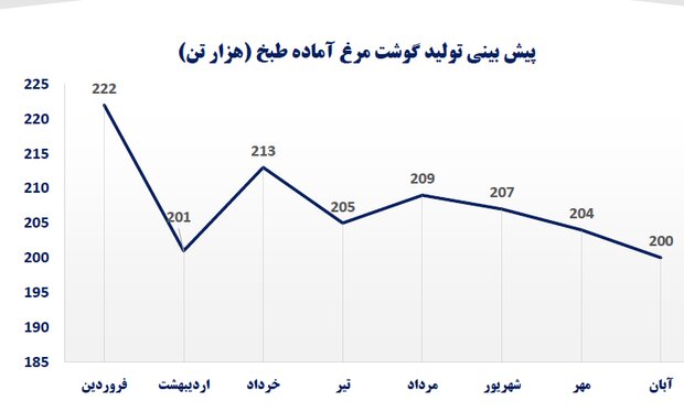 وی ادامه داد: در سالجاری به طور متوسط ماهیانه بین ۲۰ تا ۴۰ هزار تن کاهش در تولید مرغ آماده طبخ داریم.