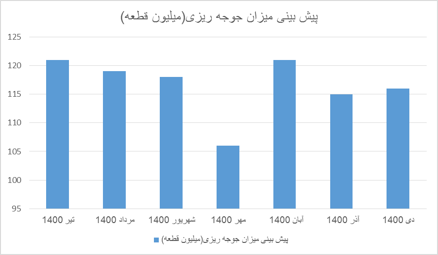 مهربانی یگانه با اشاره به پیش بینی جوجهریزی در سال ۱۴۰۰، گفت: میزان جوجهریزی در تیرماه ۱۴۰۰، حدود ۱۲۱ میلیون قطعه، مرداد ۱۱۹ میلیون قطعه، شهریور ۱۱۸ میلیون قطعه، مهر ۱۰۶ میلیون قطعه، آبان ۱۲۱ میلیون قطعه، آذر ۱۱۵ میلیون قطعه و دی ۱۱۶ میلیون قطعه است.