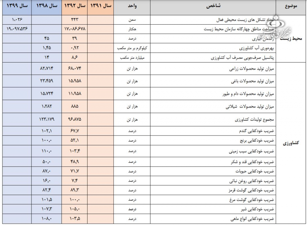 گزارش آماری بخش کشاورزی به شرح جدول زیر میباشد: