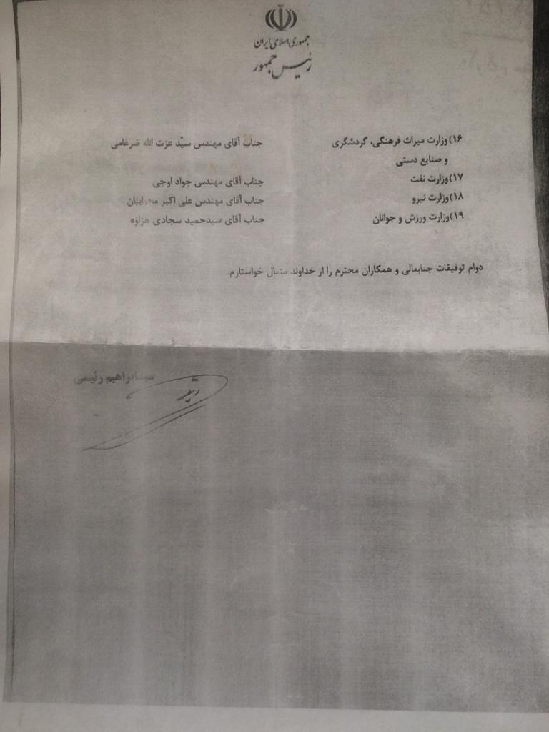 فهرست وزرای پیشنهادی آیت الله سیدابراهیم رییسی تقدیم مجلس شورای اسلامی شد