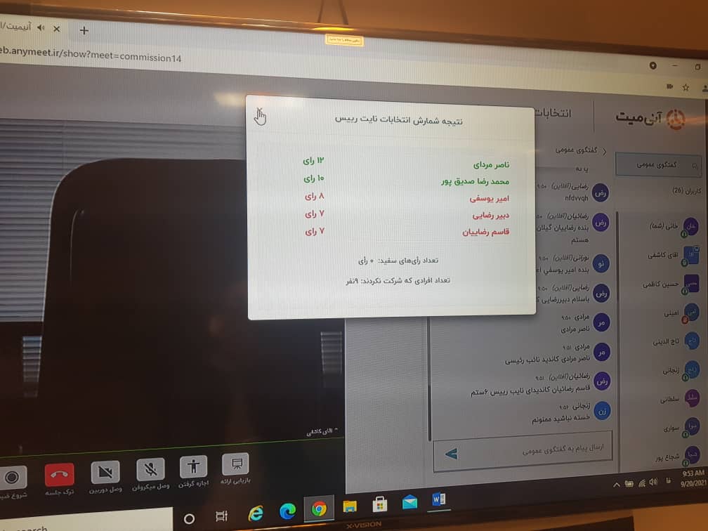بنا براین گزارش ناصر مرادی و محمدرضا صدیق پور نیز به ترتیب با ۱۲ و ۱۰ رای به عنوان نواب رئیس برگزیده شدند.