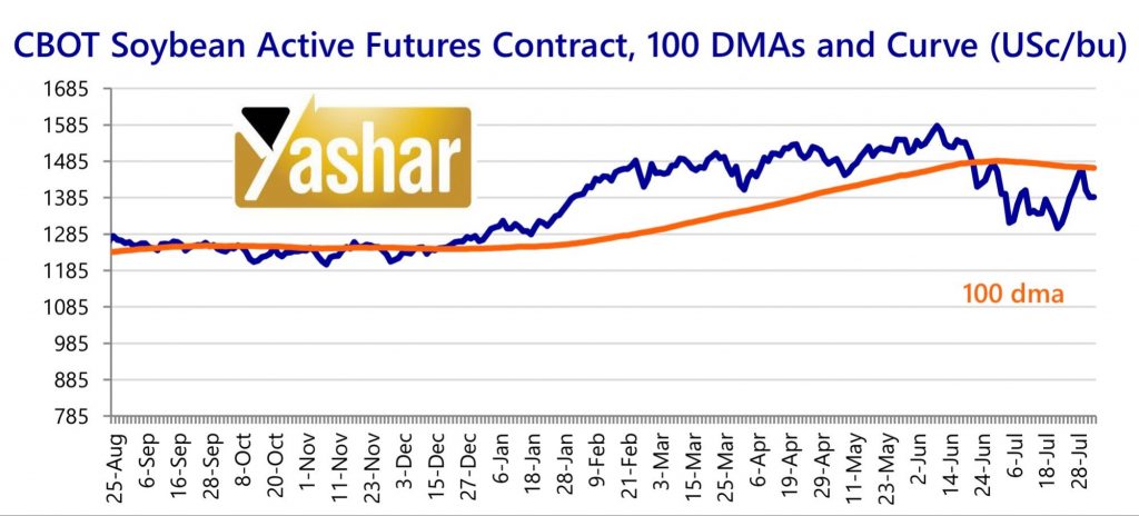 طبق اعلام وزارت کشاورزى امریکا، میزان دانه سویا صادراتى در هفته منتهى به ٢٨ام ماه جولاى حدود ۵۵۵،٠٨٣ تن بوده که افزایش ۴١٪ نسبت به هفته قبل از آن دارد. این میزان، ١٩٩٪ از مدت مشابه در سال قبل با ١٨۵،٧٢٣ تن، بالاتر میباشد.