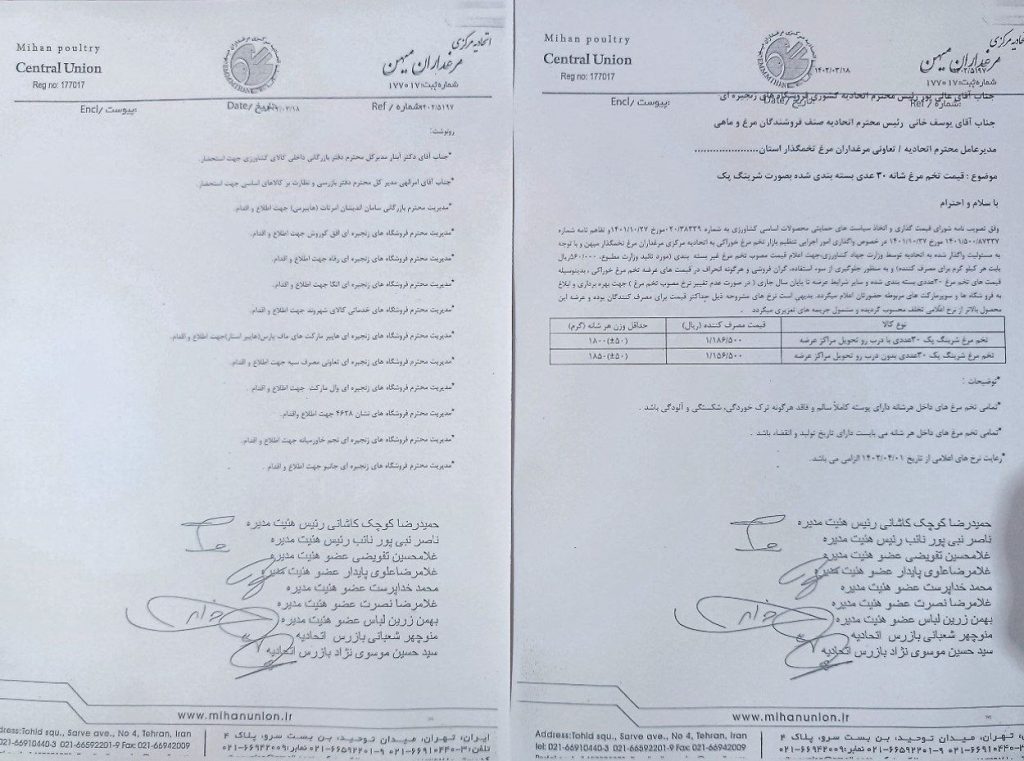 قیمت تخم مرغ بستهبندی شده با در روی محصول ۱۱۸ هزار و ۶۵۰ تومان و بدون در ۱۱۵ هزار و ۶۵۰ تومان برای اجرا از ابتدای تیرماه اعلام شد.