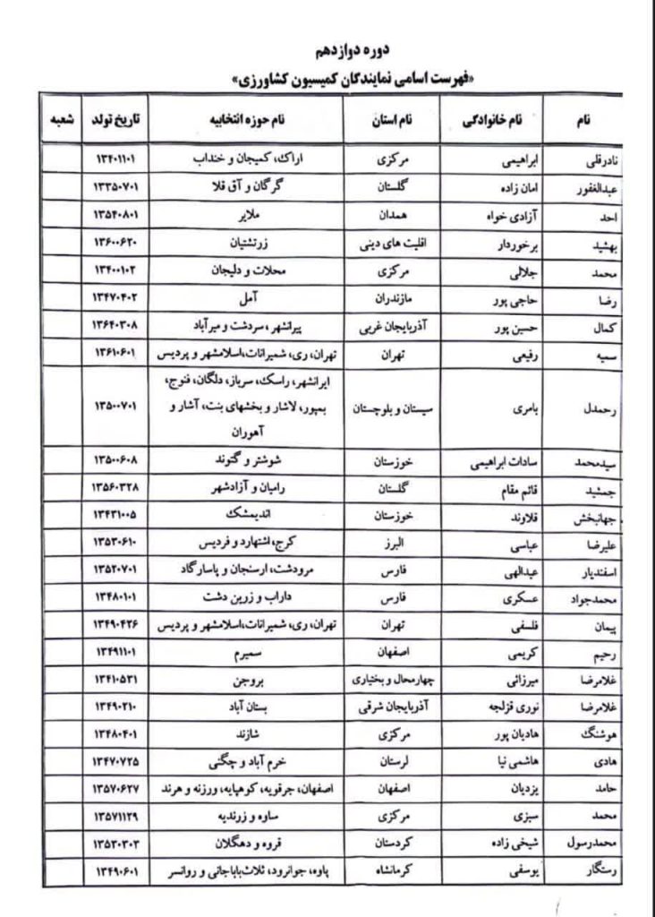 اعضای دوره دوزادهم کمیسیون کشاورزی، آب و منابع طبیعی مجلس شورای اسلامی انتخاب شدند.