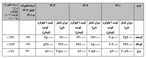 آمار گواهی میدهد که تنها در ۳ سال گذشته نسبت ۴ به ۱ قیمت خرید مرغ در برابر گوشت برای خانوار ایرانی به ۸ به ۱ رسیده است. بدین معنا که میزان مصرف گوشت قرمز با احتساب تجمیع کشتار و واردات گوشت تازه (گوسفند و گوساله) از ۵۴۷ هزار تن در برابر ۲ میلیون و ۸۹ هزار تن مرغ در سال ۱۴۰۱، به ۴۳۵ هزار تن در برابر ۲ میلیون و ۵۸۰ هزار تن مرغ در سال ۱۴۰۳ رسیده است. یعنی به موازات افزایش قیمت گوشت در طول این ۳ سال، تقاضا به سمت گوشت مرغ سوق پیدا کرده است.