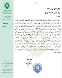 احتراماً با توجه به شرایط موجود و مشکلات فراوان در زمینه تامین نهادههای دامی و علوفه و نیز افزایش هزینههای تولید و قیمت نهادههای خام دامی در ماههای اخیر، و نیز ثابت ماندن قیمت شیر خام، متاسفانه دامداران کشور در حال نابودی و ورشکستگی میباشند وروزانه حجم زیادی از دام های مولد روانه کشتارگاه میشود.